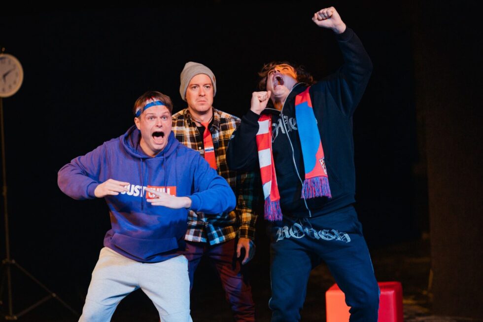 Raspucavanje” govori o tri školarca, Slovenacu, Romu i djetetu bogatih roditelja. Što su radili tijekom te utakmice Borna, Aleš i Kemal, glavni junaci predstave, koji se tijekom kazne bore s načinom kako barem osluškivati tijek utakmice? U prvi plan iskaču teme međuvršnjačkog nasilja, rasne diskriminacije i drugih problema koje se sve češće ogledaju u našem društvu. Tri dječaka identificiraju se kroz predstavu s velikanima vlastitog odrastanja, tj. našim nogometašima i kroz njihov uzor i njihovo zajedništvo stvaraju svoju nerazdvojivost, međusobni odnos i pomirenje. Postaju bolje i plemenitije osobe, spremnije za život koji je pred njima.
