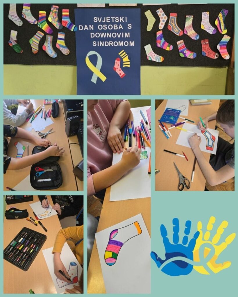 U znak podrške učenici 5. razreda naše škole bojili su čarape od papira u što šarenijim motivima. Cilj radionice je da svi pričaju o Svjetskom Down sindrom danu, a to možemo učiniti tako da nosimo vedro obojene različite čarape, što su naši učenici i učinili.